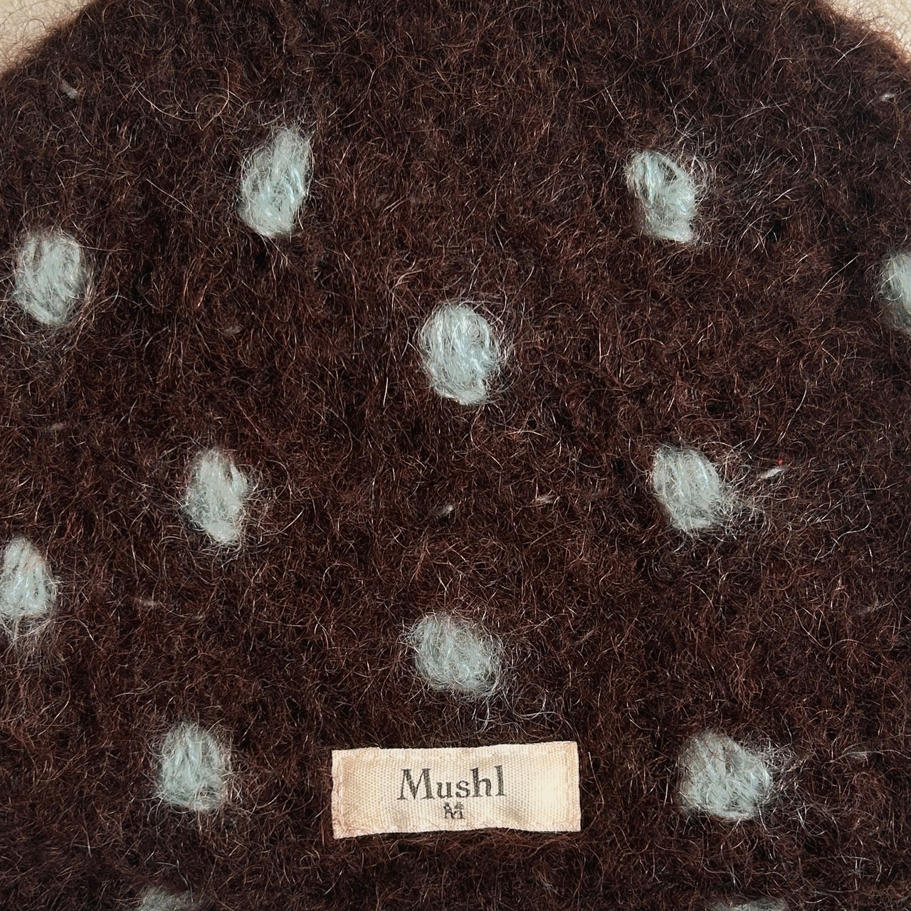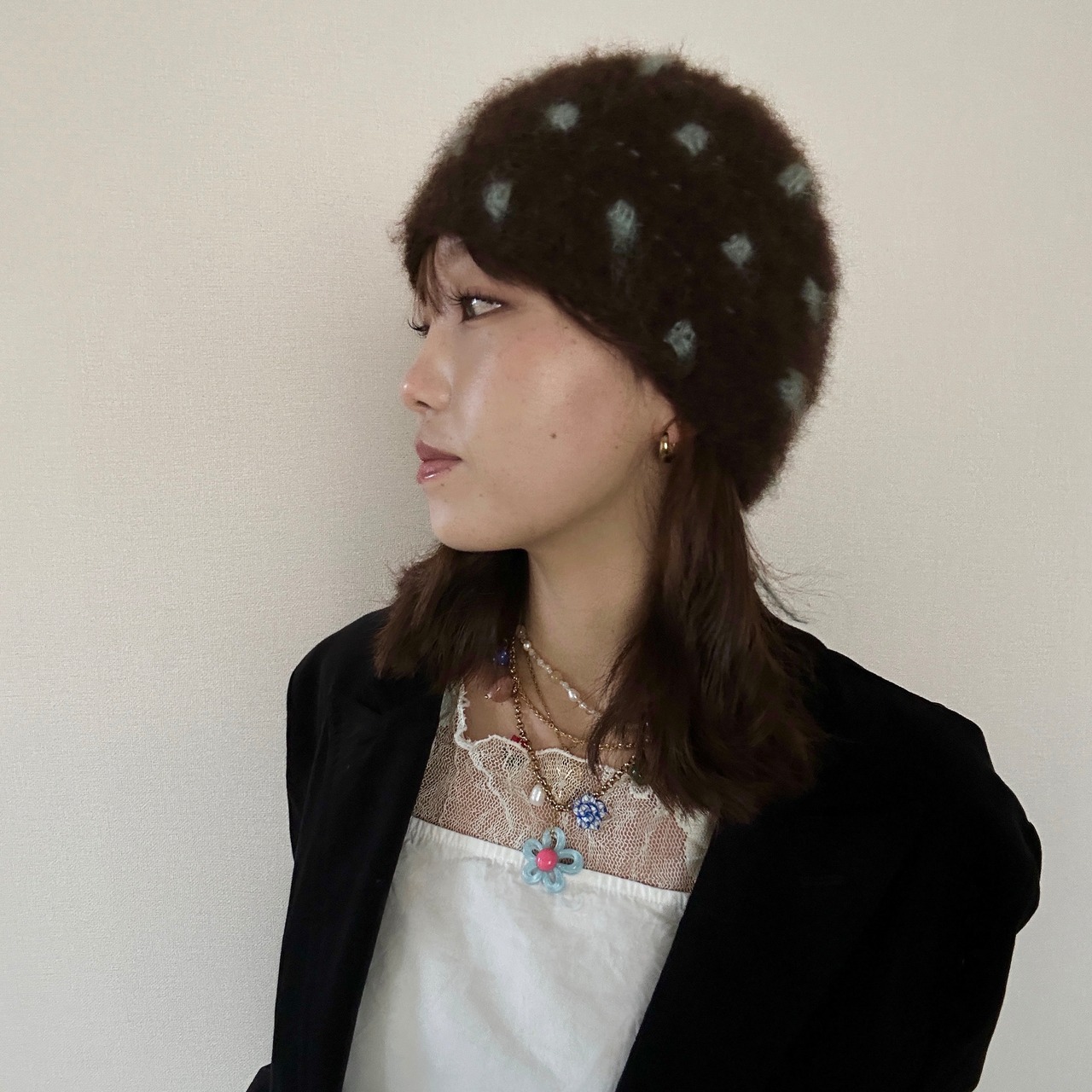 Polka dot knit hat【brown】