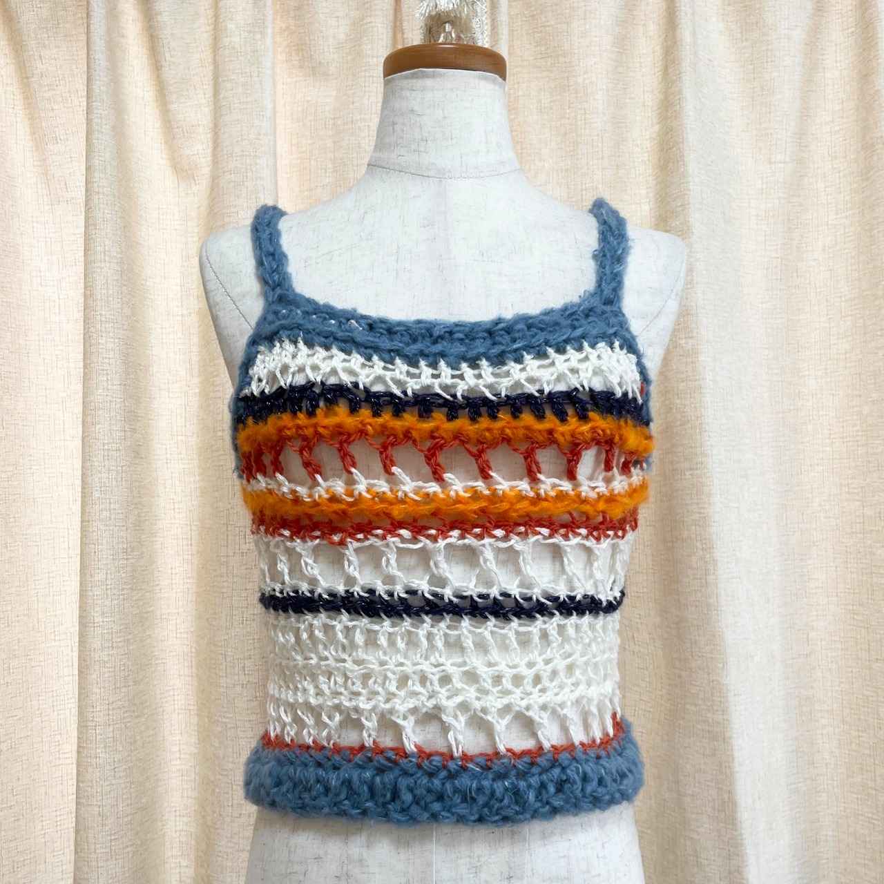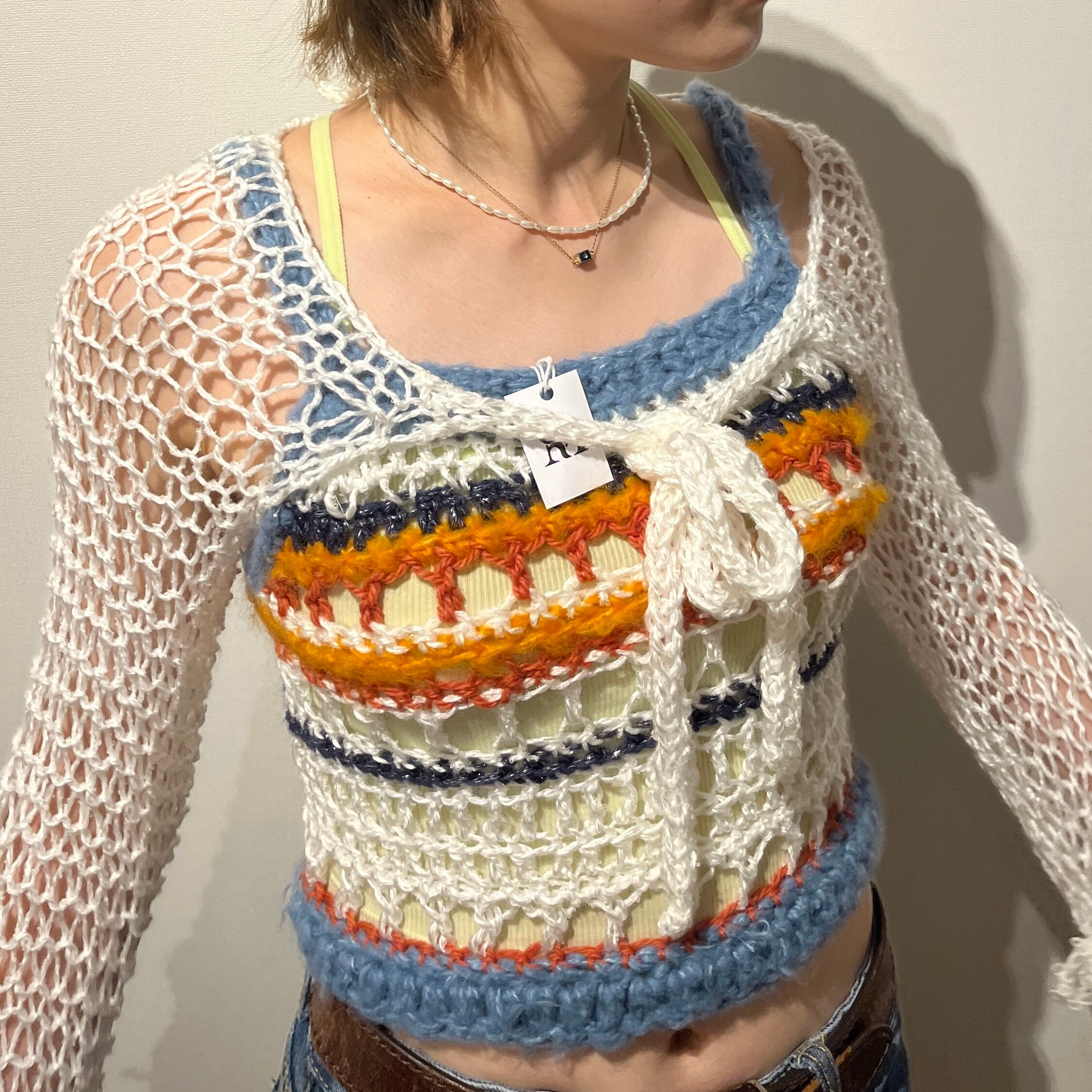 色々な糸を使ったニットビスチェです。